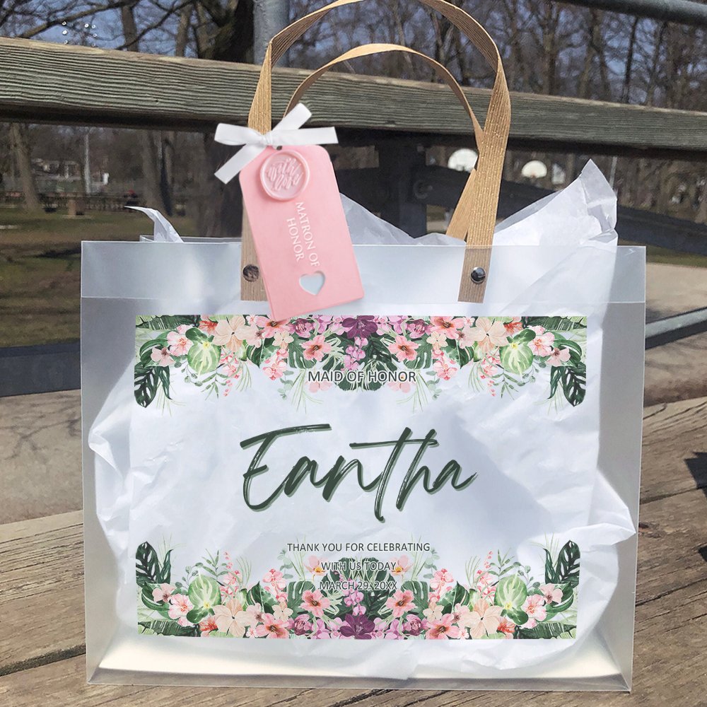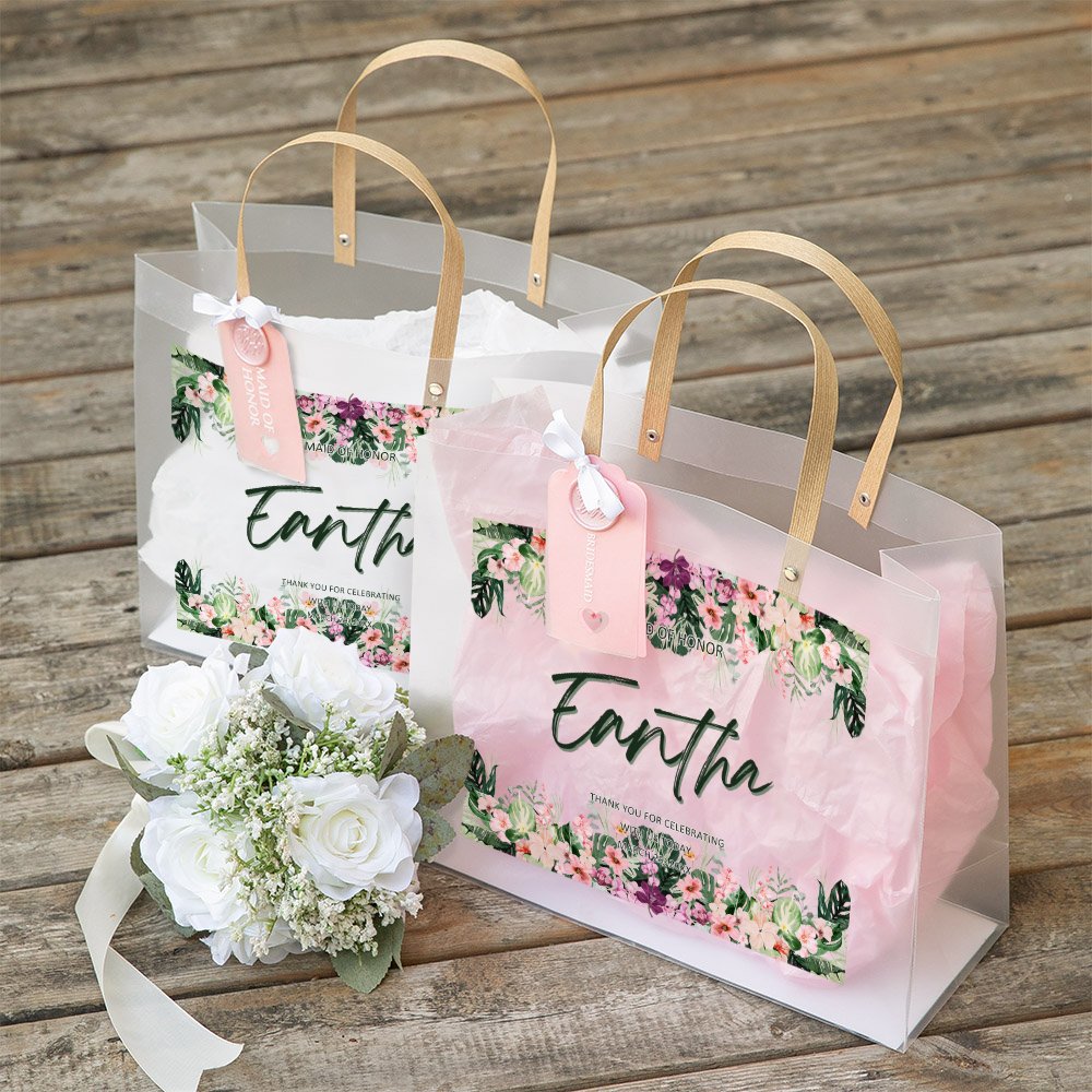 The tote bag can be customized bridesmaid's name, and printed with the words "THAN YOU FOR CELEBRATING", making them feel appreciated and valued. Not only is this transparent plastic gift tote bag a beautiful and personalized gift, but it also serves as a useful item that can be reused long after the occasion.