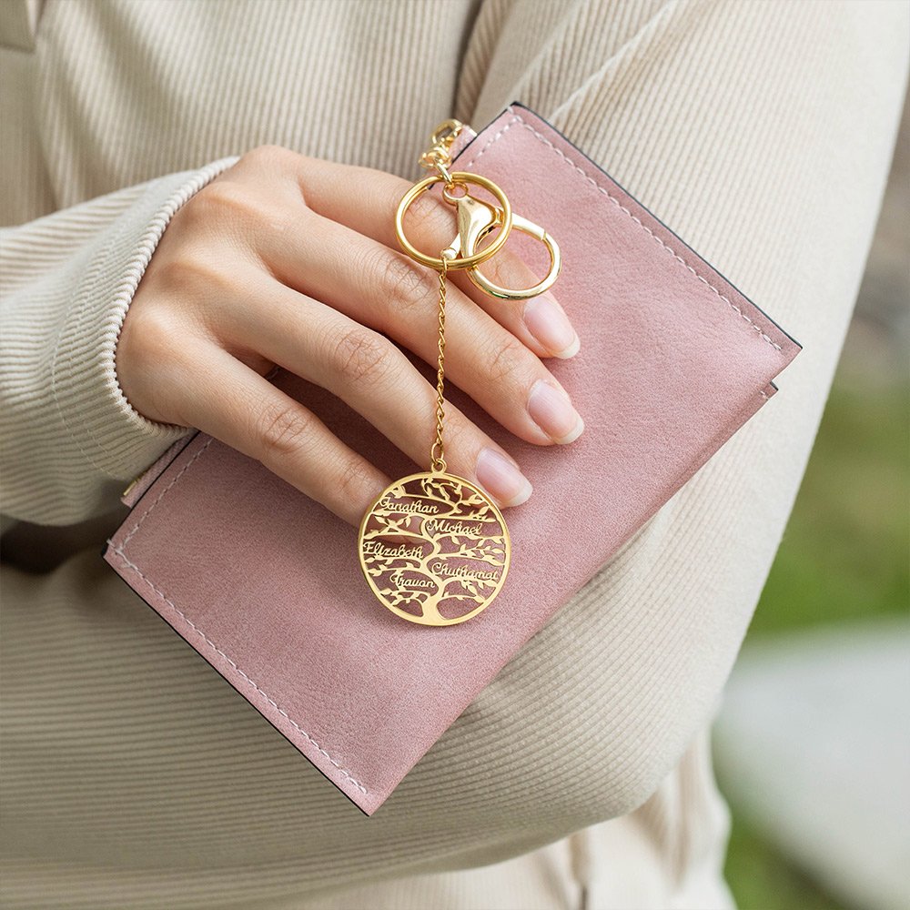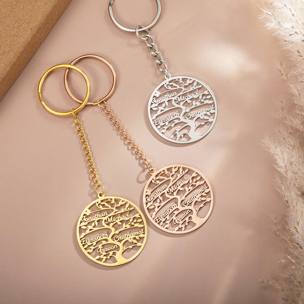 The keychain features a beautiful family tree design that can be personalized with 1 to 13 children's names. It's a perfect representation of the bond and love shared within a family.