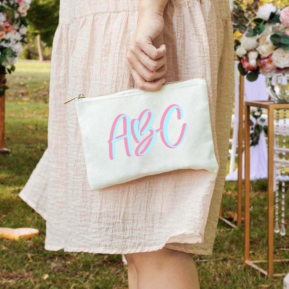 This personalized makeup bag available in white, pink, and green colors is simple and individual, the simple color is suitable for any style of clothes. It designs with a metal zipper closure to keep everything in place. As a toiletry bag, it will not take up too much space, suitable for your travel and shopping.