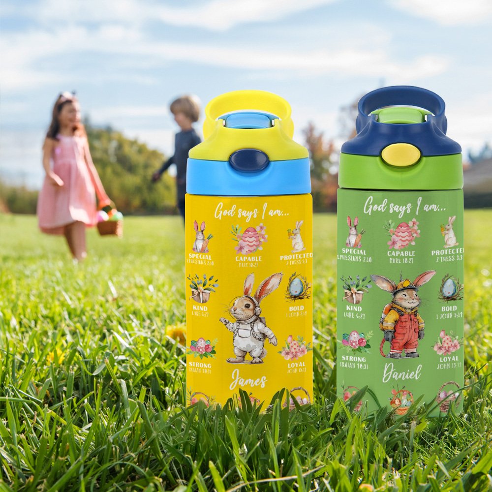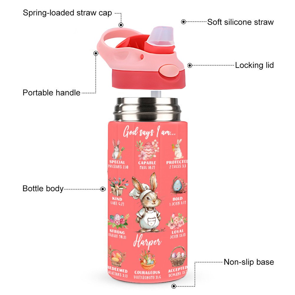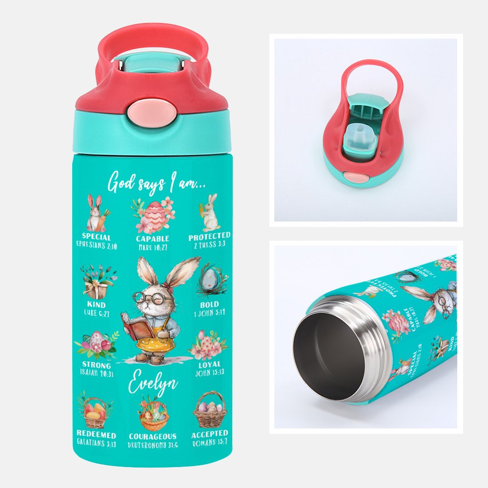 Add a touch of fun and personality to your child's day! Our customized children's thermos flasks feature cute bunny designs dressed in a variety of professional attire, so you can choose a career that matches your child's dreams. The design is both adorable and inspiring, complemented by uplifting adjectives from the Bible such as "God says I am..." exuding positivity and the power of faith.