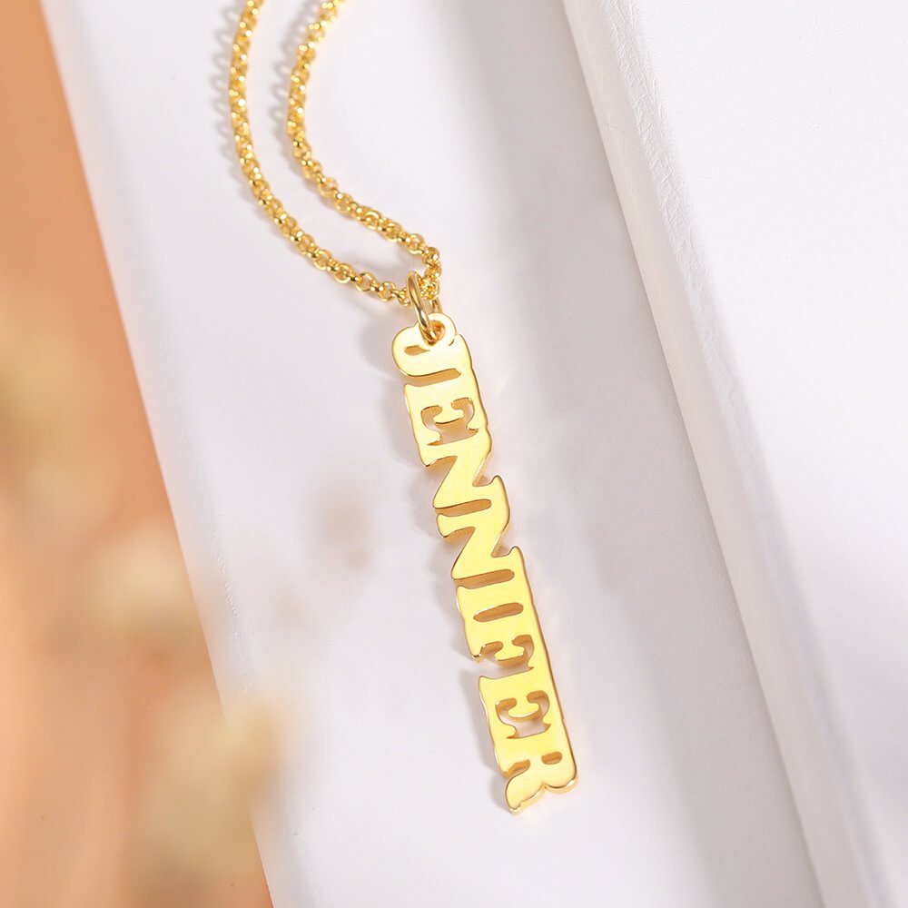 •Callie offers this vertical name necklace, which is simple and meaningful to engrave your name or words you like. The shining surface is handcrafted by designers. Every single letter is the only one in the world. People can’t directly see the words so it will not be easy to recognize what your customization is at the first glance. You can keep the reminder and uniqueness on your own.