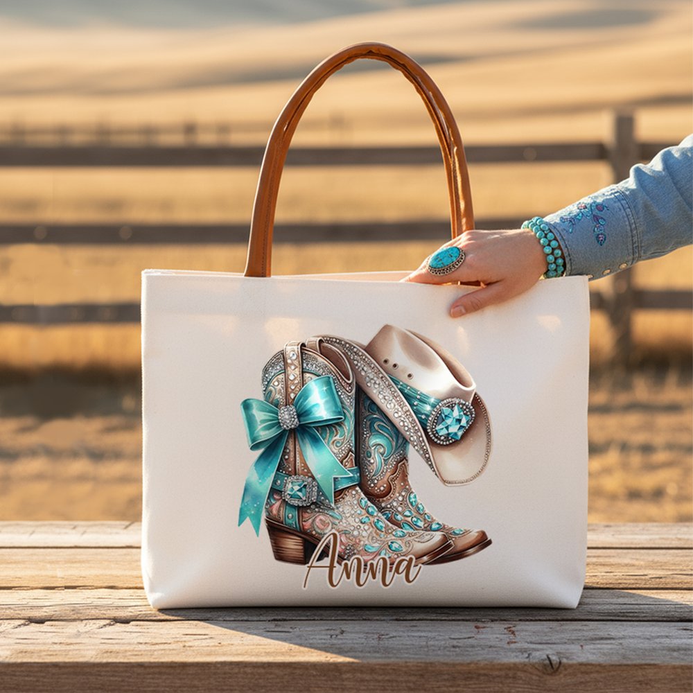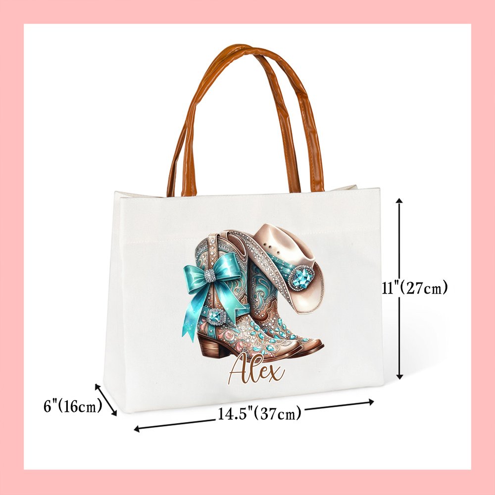 Inspired by vintage jewelry-style boots, this tote bag features a distinctive design that sets it apart from the crowd. The elegant patterns and fashionable colors combine to create a stunning accessory that catches the eye. With the option for personalized name customization, you can effortlessly showcase your unique taste and individuality.