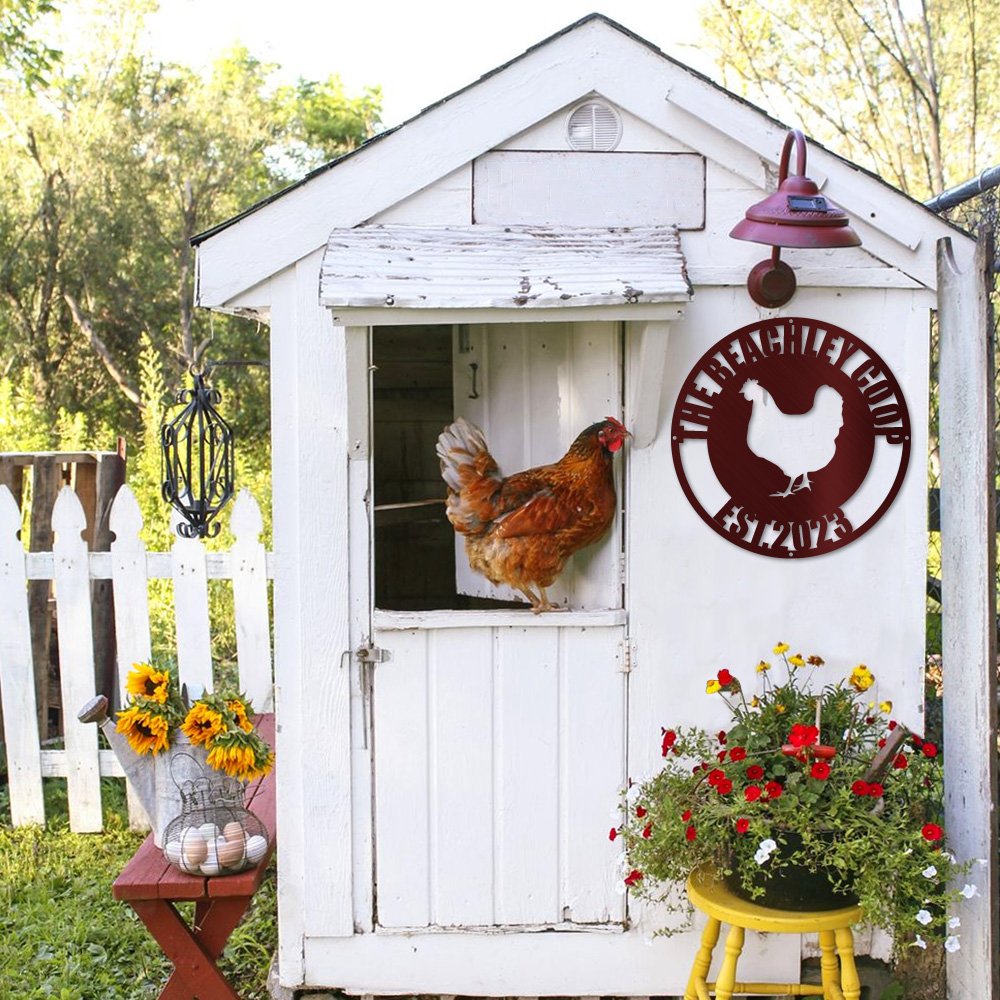 Crafted from high-quality metal, this chicken coop farm sign is built to last. The sturdy construction ensures that it can withstand the elements and retain its beautiful appearance for years to come. Whether it's hanging on an exterior wall or inside the coop itself, this metal sign will add a special feeling to any space.