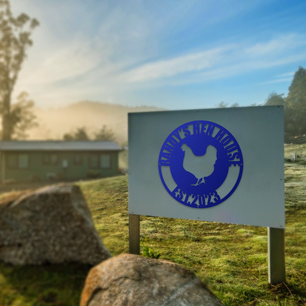 Customize this gift with a name and date. Whether it's the farmer's name, the farm, or even the chickens themselves, our skilled artisans will meticulously engrave it onto the metal sign.