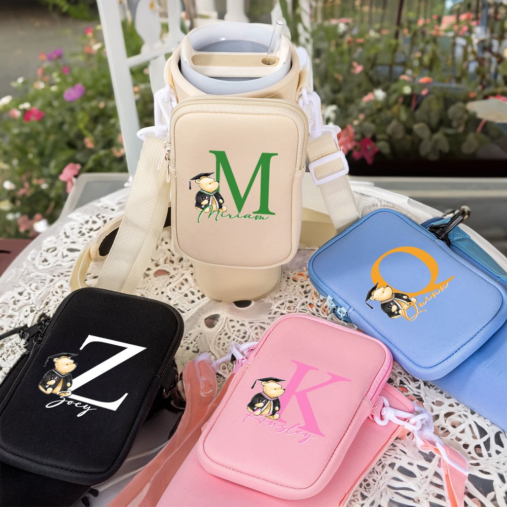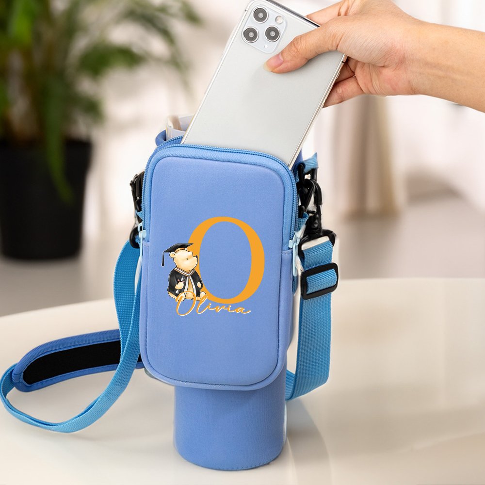 This carrier bag is designed to safely hold a 40-ounce tumbler, making it ideal for exercising, hiking, or any outdoor activities. The adjustable strap is easy to carry, so you can stay hydrated wherever you go. It also comes with a pouch where you can put your keys, phone, or other small necessities.