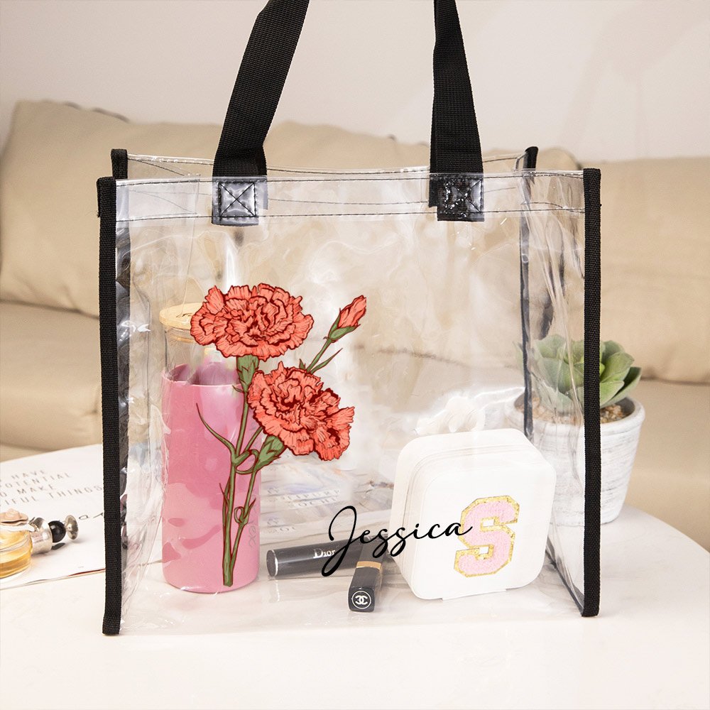 These clear tote bags are designed with your personal style in mind. With our customization option, you can personalize your bag with your name and the birth flower pattern making it uniquely yours. Stand out from the crowd and show off your individuality with a bag that reflects your personality.