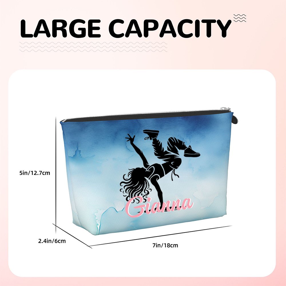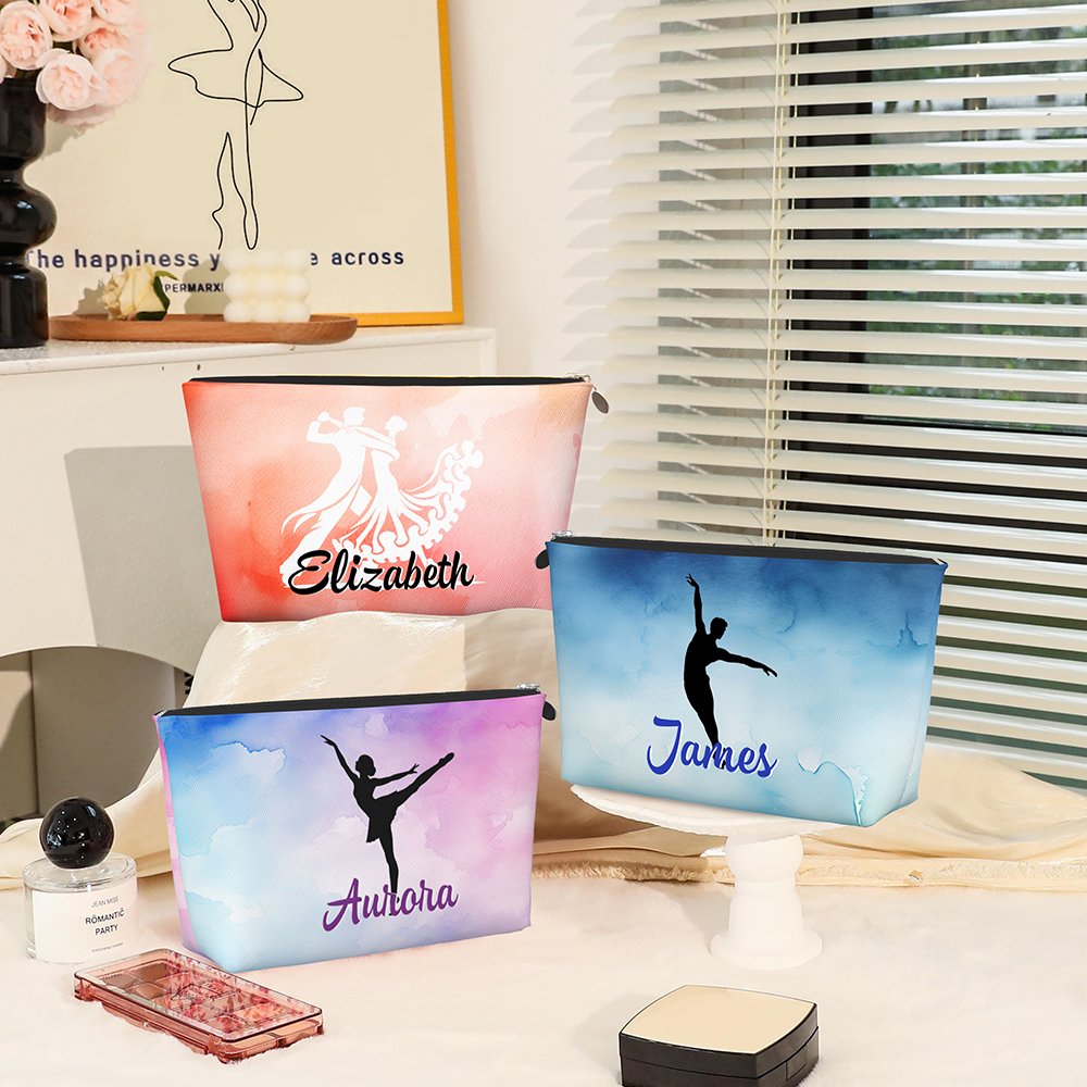 This makeup bag features a stunning dance silhouette design, allowing you to choose from 52 different dance poses and 20 beautiful ink-wash background colors. Showcase your love for dance and personal style by selecting your favorite dance movements. Additionally, you can customize the bag with your name, making it a truly unique and personal accessory that reflects your individuality.