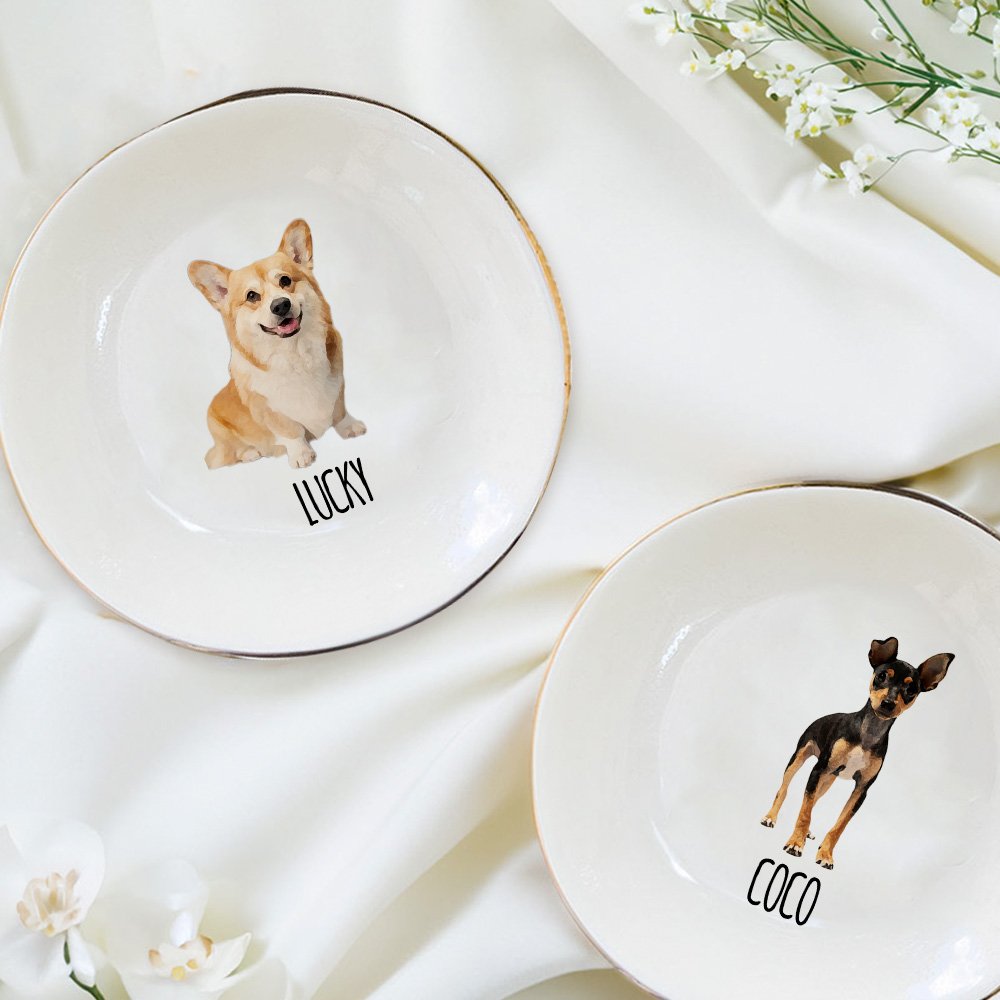 Made of high-quality ceramics, the jewelry plate has a smooth and delicate surface, comfortable to the touch, and easy to clean. The high-temperature firing process ensures that the plate is sturdy and durable and not easy to crack. The exquisite gold edging and high-definition oil painting style printing technology make the image of the pet come alive.