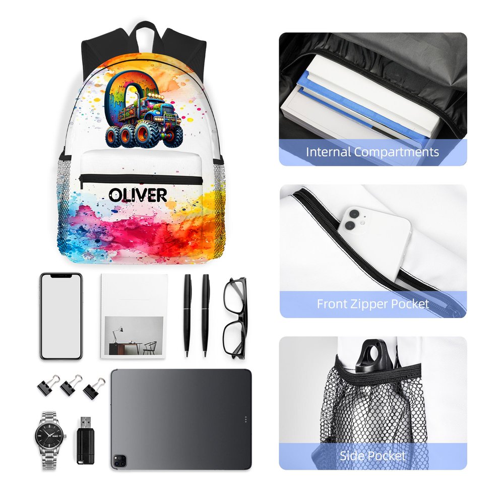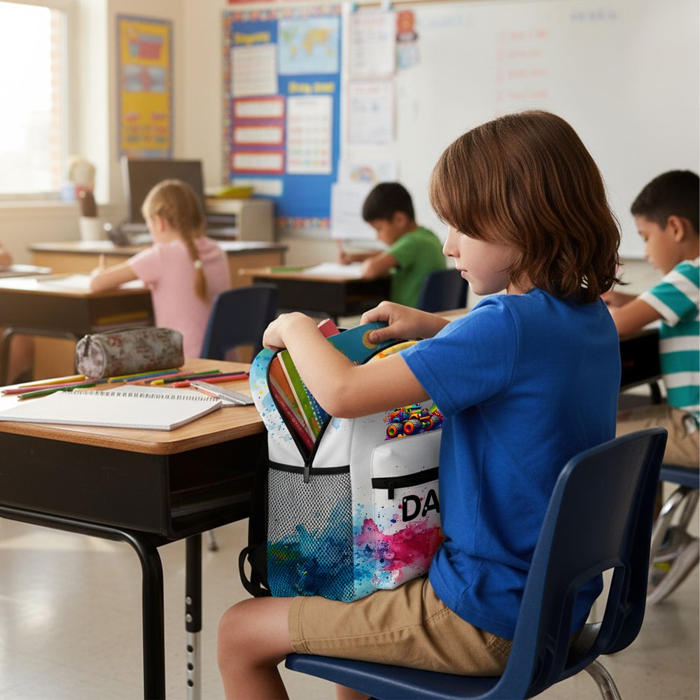 The watercolor truck design is dynamic, cool, and imaginative. Customizable with initials and names, it combines energy and personal style, making it a unique accessory for school or outings. It not only showcases your child's individuality but also fosters a sense of ownership and pride.