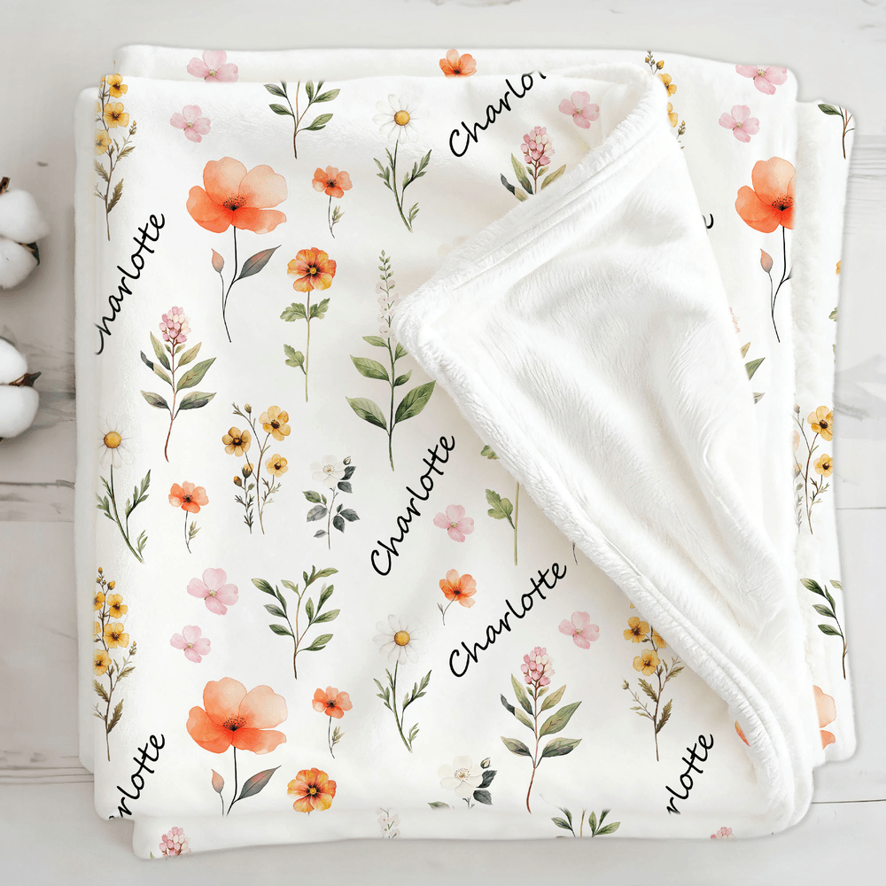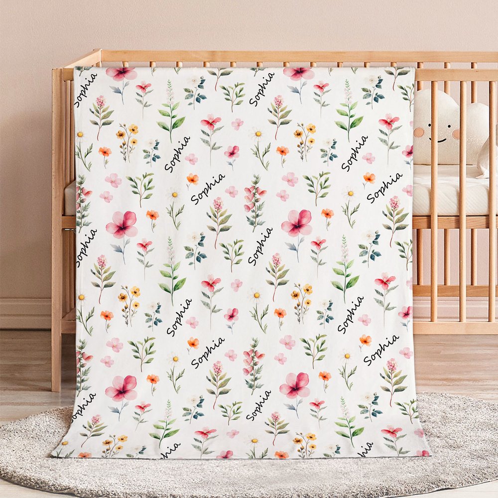 Featuring a delightful floral print, showcasing fresh and elegant colors that bring a touch of nature indoors. This design not only captivates children's attention but also adds a warm aesthetic to your home. The combination of personalized floral patterns and a custom name makes this blanket a standout piece in home decor and a symbol of family warmth.