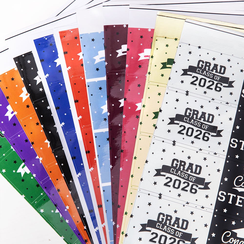 Choose from 16 vibrant color options to perfectly match your party theme. These labels can also be personalized with the graduate's name and year, adding a unique and personal touch to your celebration.