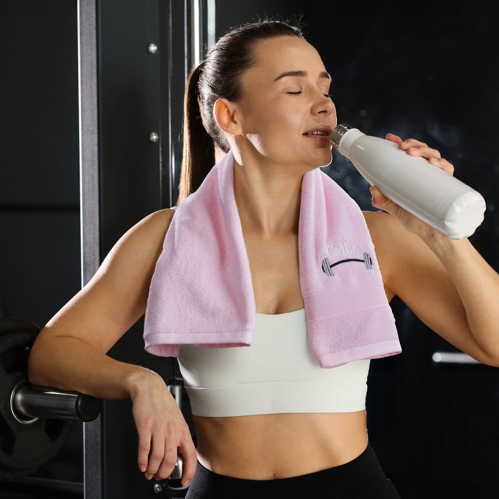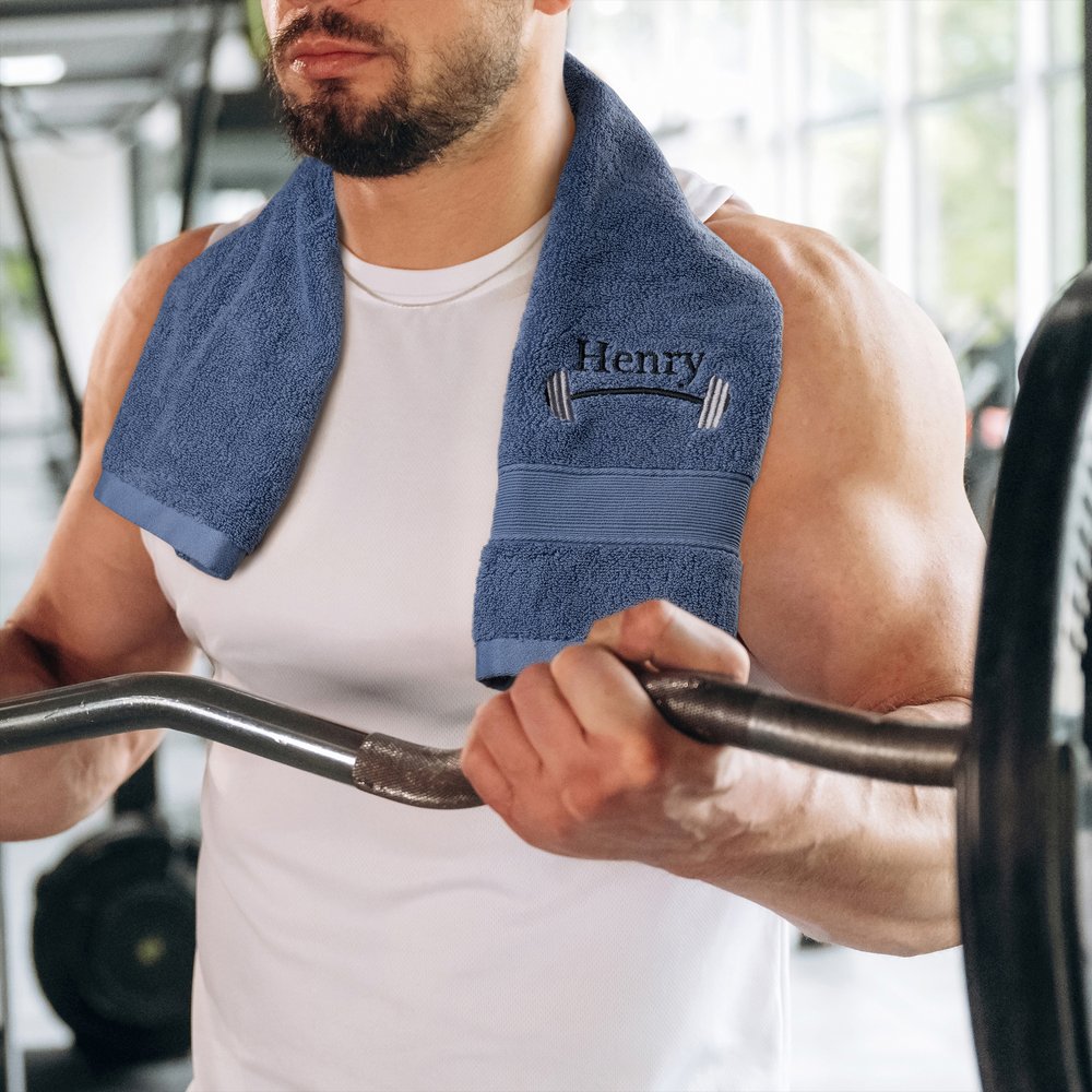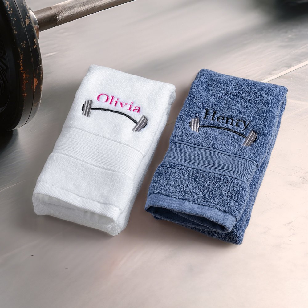 This towel weightlifting theme with name embroidery and barbell motif not only adds interest but also conveys the passion for the sport. Personalized Exclusive name customization allows the user to feel this unique sentiment.