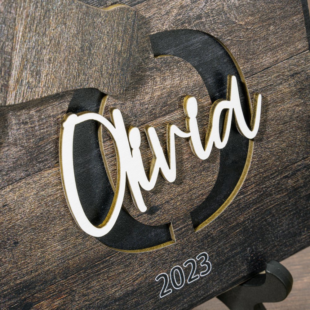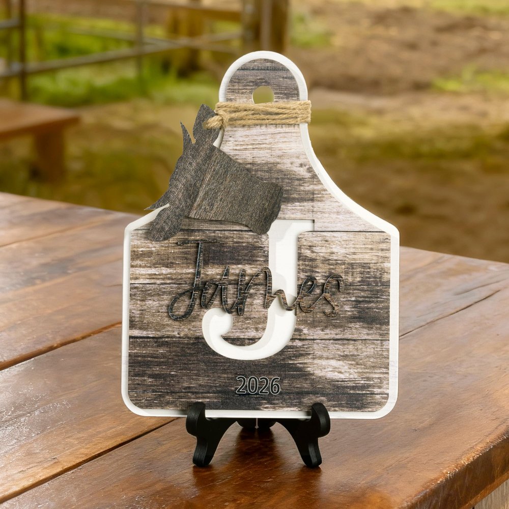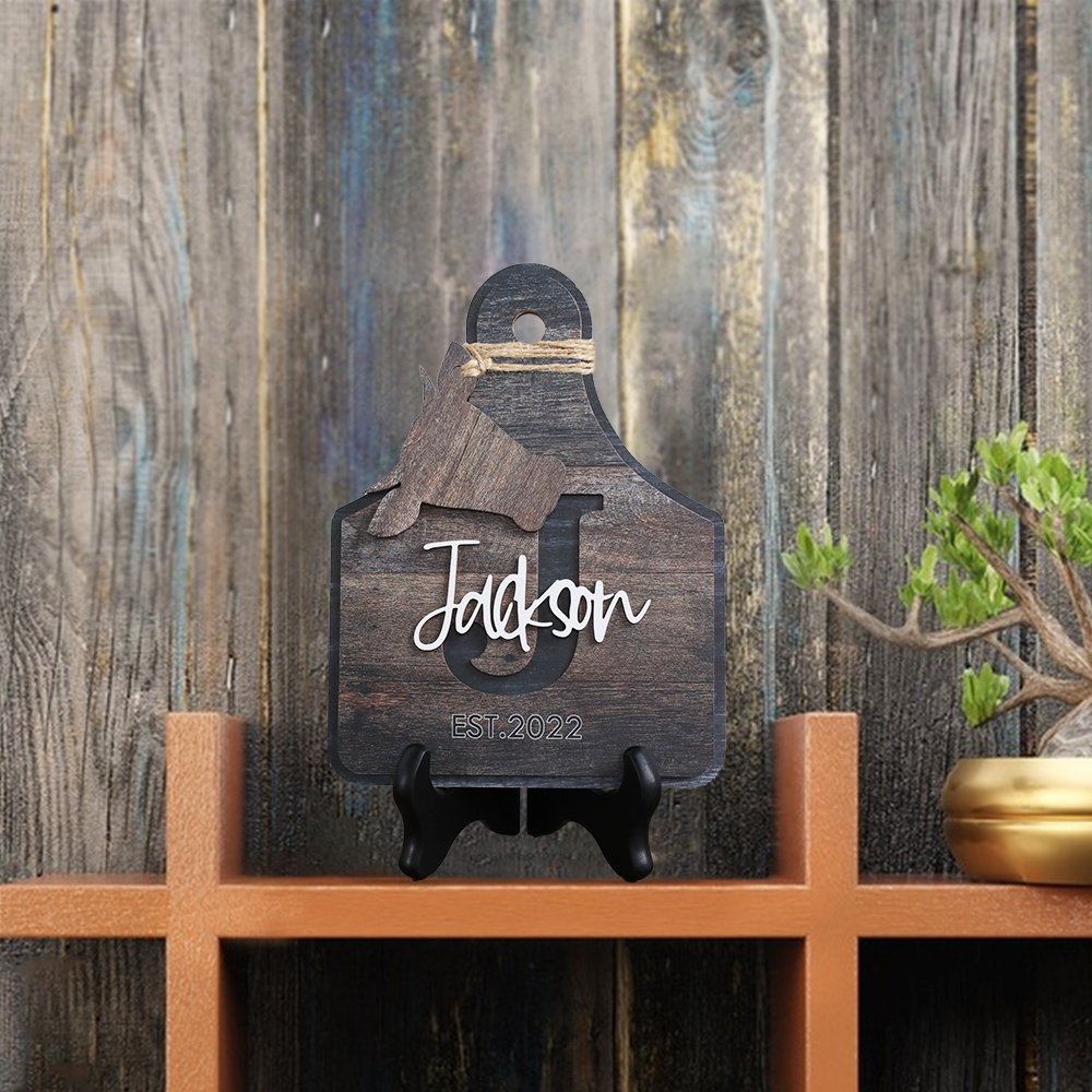 This cow desktop ornament cleverly combines country style with modern custom elements. The top is equipped with a hemp rope and a cow head-shaped pendant, which adds a pastoral atmosphere. The hollow initial design in the middle is matched with a customizable name and dates, making each cow desktop ornament unique and memorable.