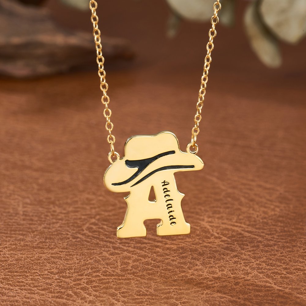 Personalized Western Cowboy Hat Initial Necklace with Name Exquisite Jewelry Anniversary Birthday Gift for Her