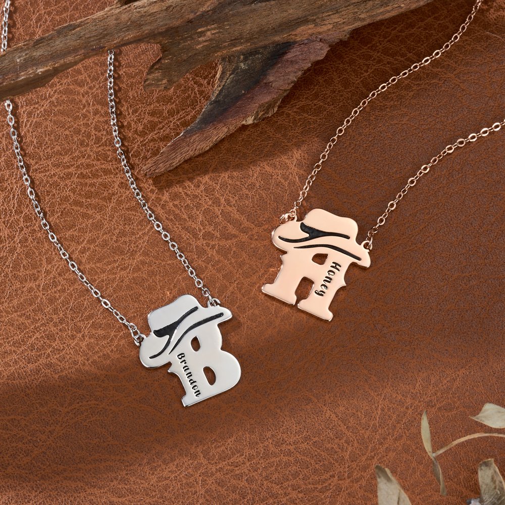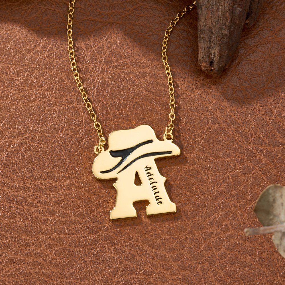 This necklace draws inspiration from the classic Western cowboy, featuring a refined cowboy hat design perfectly blending the free-spirited retro essence of the American West with a personal symbol. We offer professional customization name and initial services, creating a unique style icon for those who love Western cowboy culture and fashion, showcasing an individualistic attitude that doesn't follow the crowd.