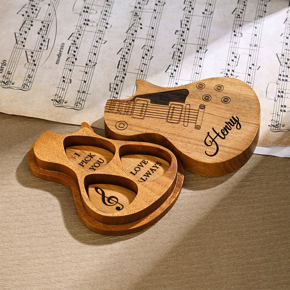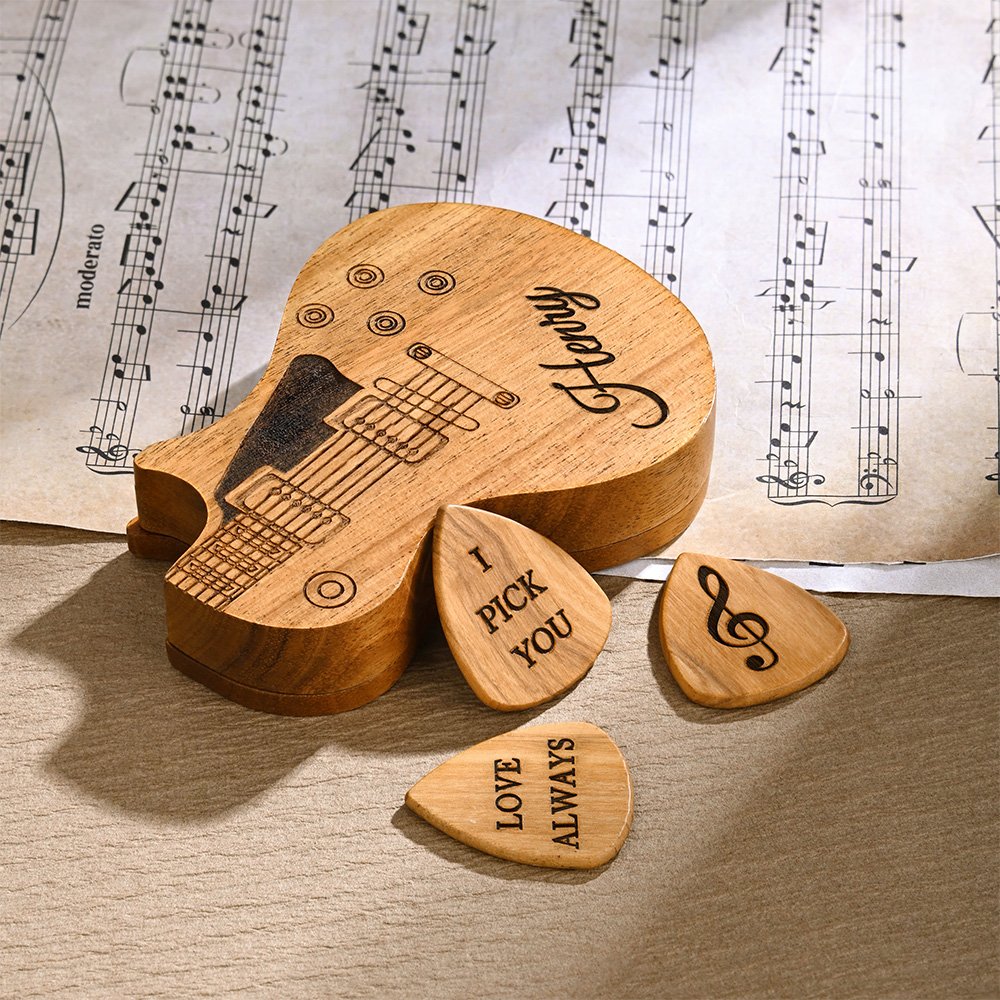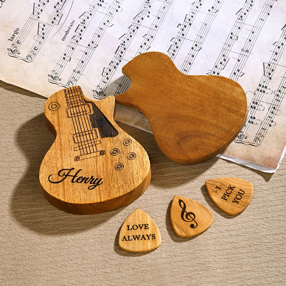 This set includes a beautifully engraved wooden holder box that can store and showcase the pick set. Each pick can be personalized with the recipient's name or initials, adding a special touch to this thoughtful gift idea.