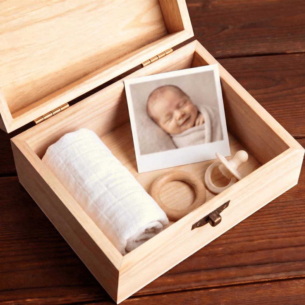 Carefully crafted from high-quality wood, this keepsake box features natural grain patterns and a warm, smooth finish. Paired with a vintage-style clasp, it presents a simple yet refined look. The surface is polished and splinter-free with rounded edges, giving each piece a unique handcrafted feel that gently complements moments of remembrance.