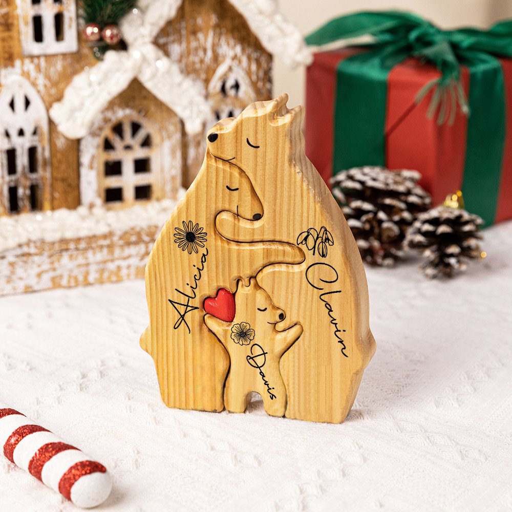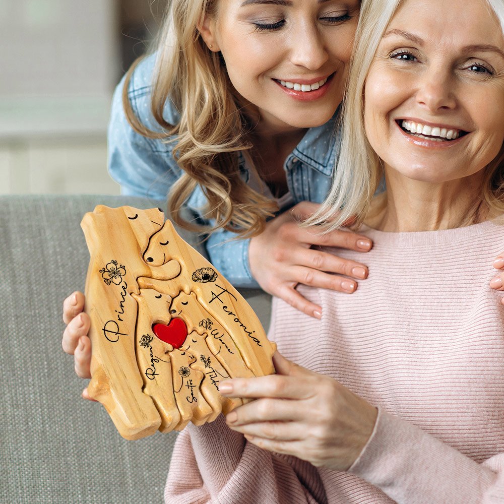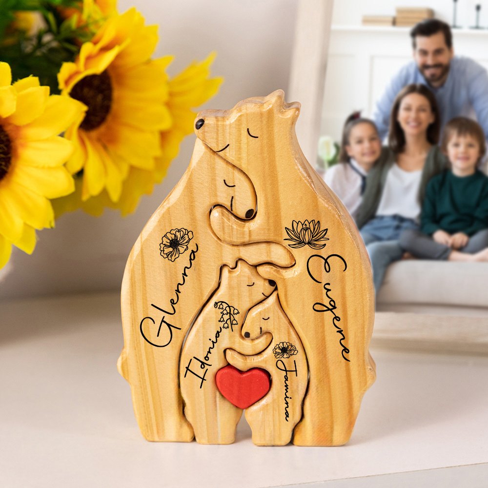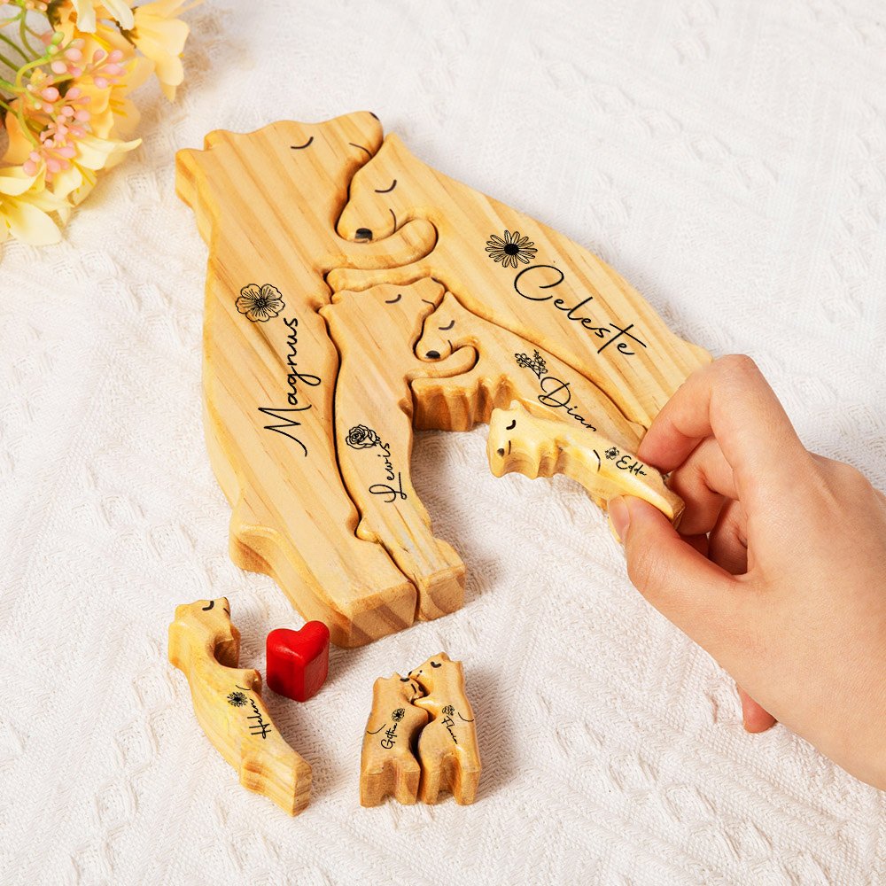 The design of this puzzle is based on the theme of the bear family. You can choose a combination of 2 to 8 bears according to the number of family members. Each bear can be customized with the name of the family member and the corresponding birthday flower, making each piece unique. The red heart pattern of the bear center shows the close connection and love between family members.