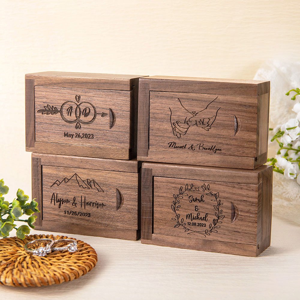 Exchange vows on your big day with this personalized wooden wedding ring box, perfect for engagements, weddings or anniversaries. Add a rustic, gentle and stylish touch to your wedding!