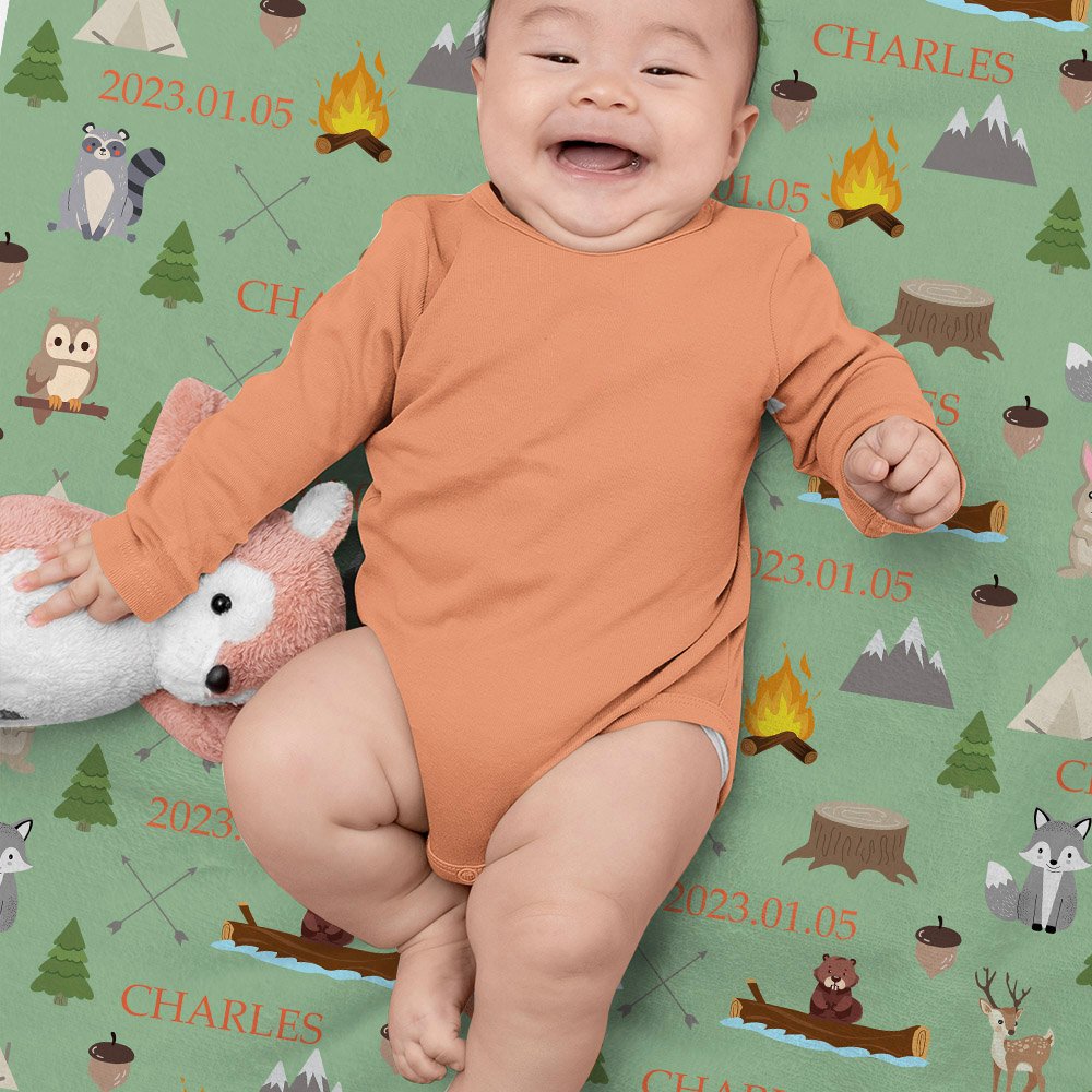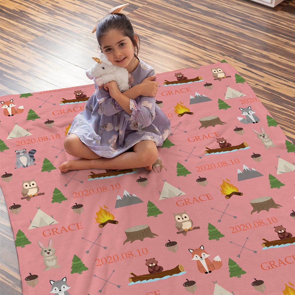 Featuring a forest adventure theme, this blanket will provide comfort and warmth to your little explorer. Not only does it look cool, it adds a touch of color and personality to any room. This blanket can be personalized with a name and time to make it truly special. It's more than just a blanket, it's a thoughtful expression of your family's love and care.