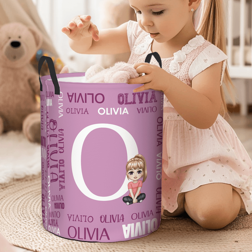 This customized laundry basket centers around family cartoon characters paired with a playful word cloud design. The basket can be personalized with a name and initials, creating a one-of-a-kind home essential. Available in 12 rich colors, it easily fits into various home styles, from minimalist to playful.