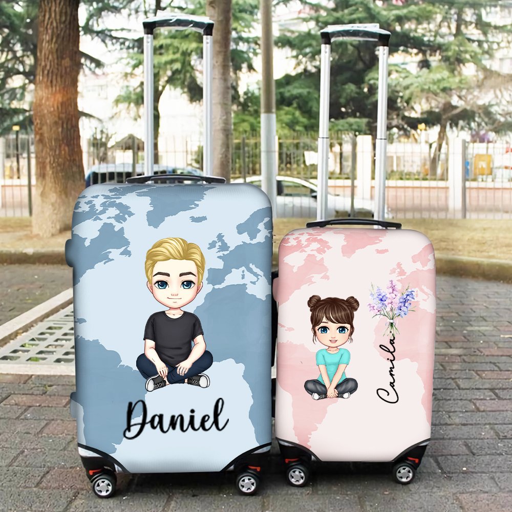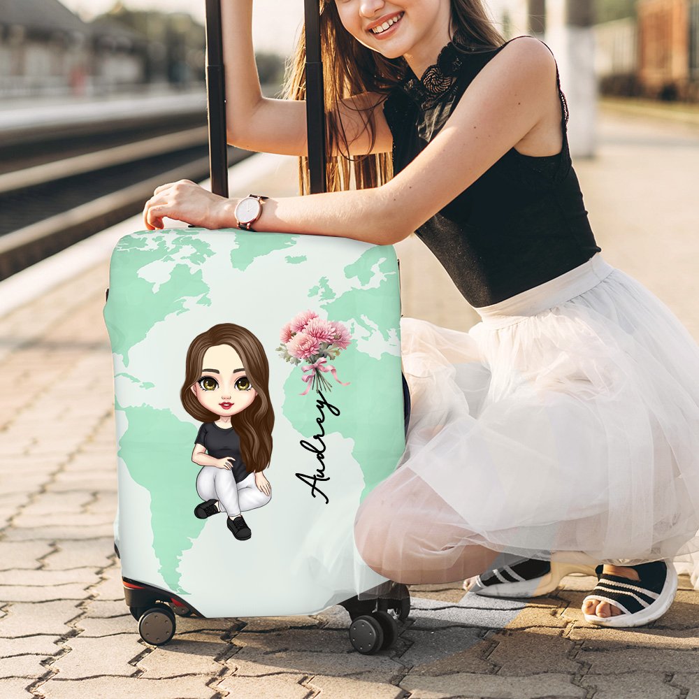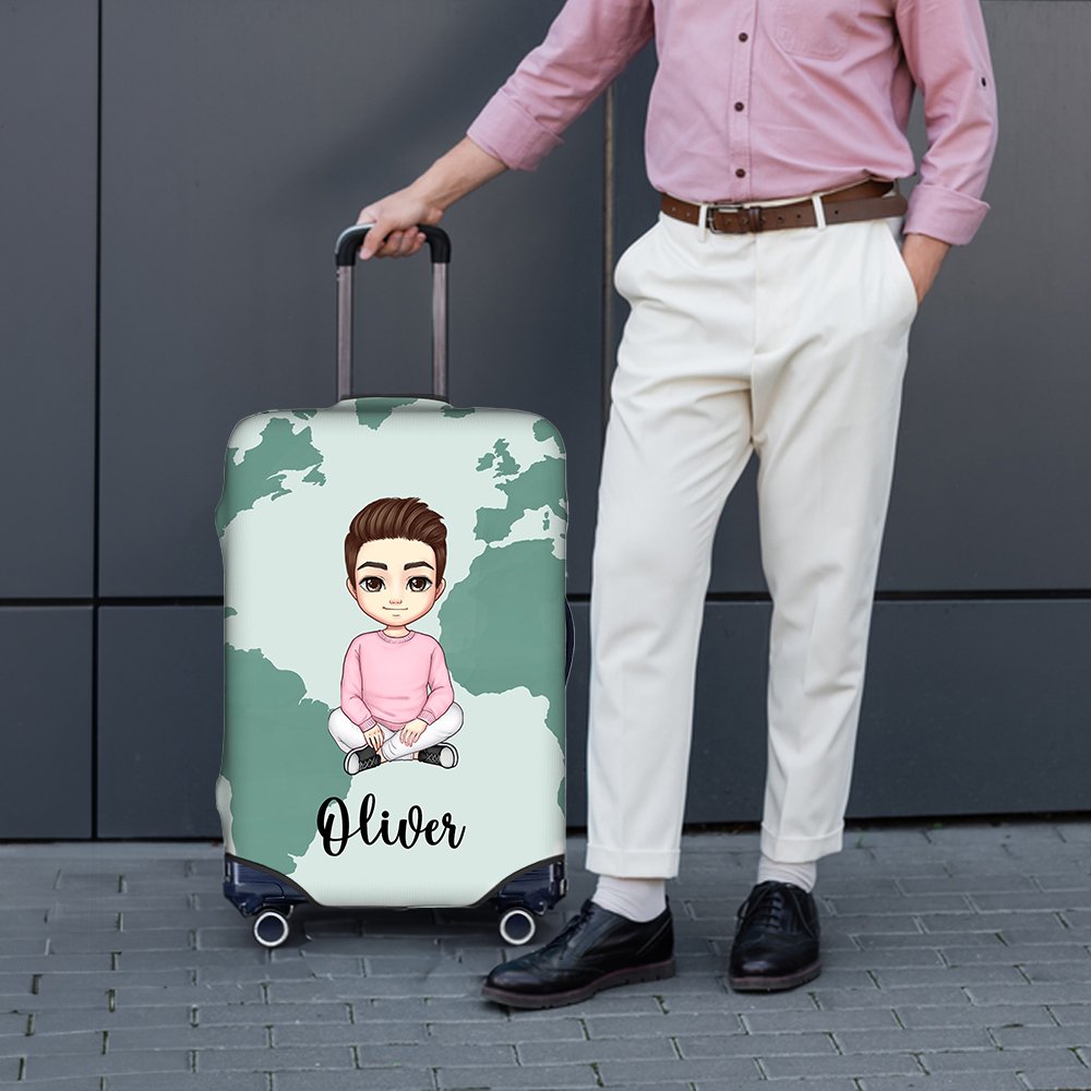 This suitcase cover is based on a unique design concept, combining flowers, cartoon characters, and maps to show your travel fashion perfectly. There are two customized styles; you can add your name and birthday flower to the suitcase cover to create travel accessories.
