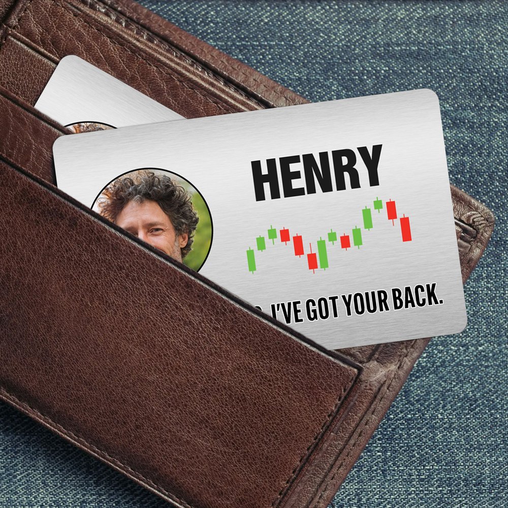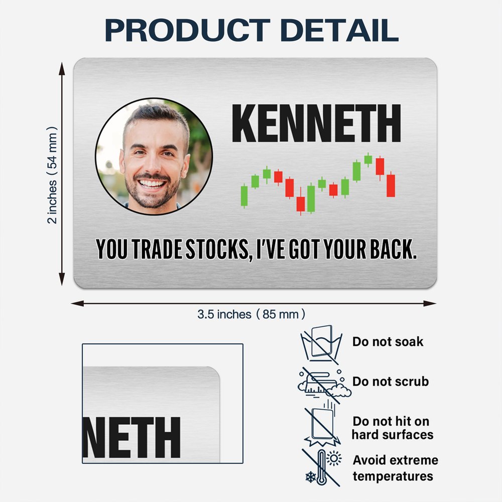 Personalized You Trade Stocks I've Got Your Back Photo Wallet Card with Name Daily Use Father's Day Birthday Gift for Dad Husband Man